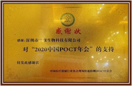 作为POCT行业的一员,乐竞体育(中国)官方网站-登录入口积极参加了此次大会。会议期间,中国医疗器械行业学会现场快速检测(POCT)分会主任委员、大会主席康熙雄教授和大会名誉主席府伟灵教授莅临乐竞体育(中国)官方网站-登录入口展台指导工作,并颁发了“对2020中国POCT年会的支持”感谢状。